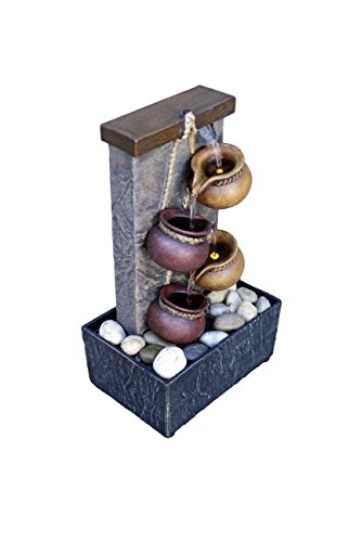 11"H Cascading Kettle Dual Power LED Fountain with Natural River Rocks (Adapter NOT Included)