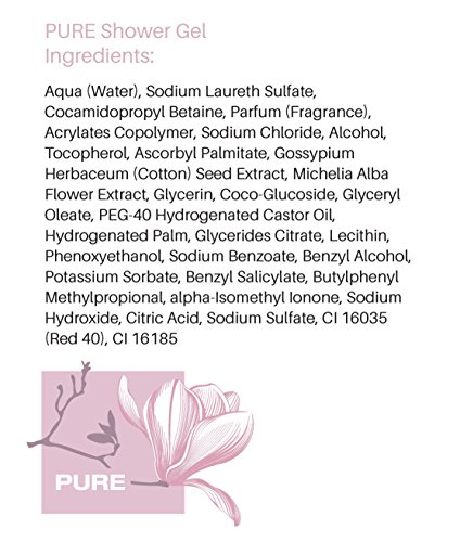 BEAUTIFULLY SCENTED: This invigorating and deep cleaning PURE Shower Gel is infused with the elegant scent of Cotton & White Magnolia. The therapeutic and relaxing aromatherapy of White Magnolia Essential Oil lightly lingers on the skin, and leaves the soothing scent of Magnolia Blossoms to follow you throughout your day