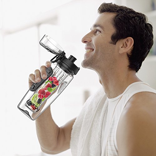 QUALITY and SAFETY - Made out of TRITAN shatterproof 100% BPA free plastic. Features a sturdy leak proof locking lid so you can take your bottle with you wherever you go.