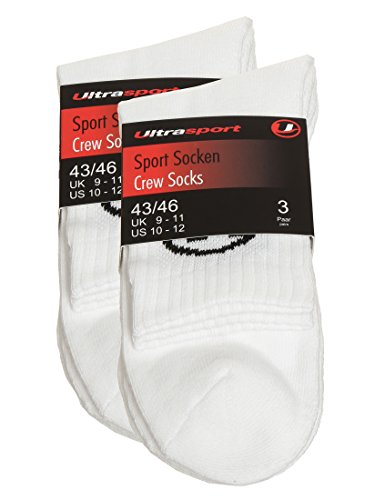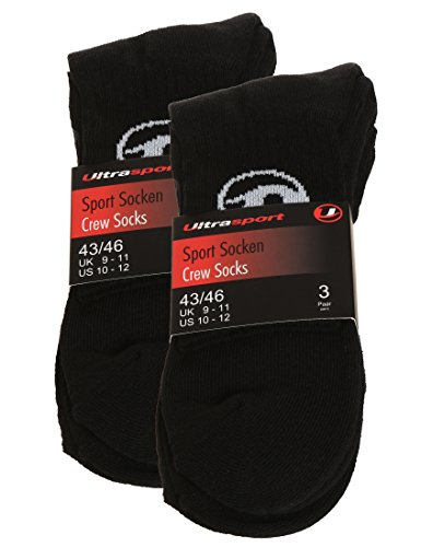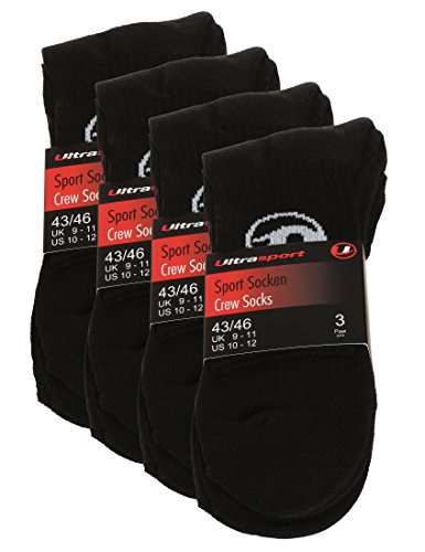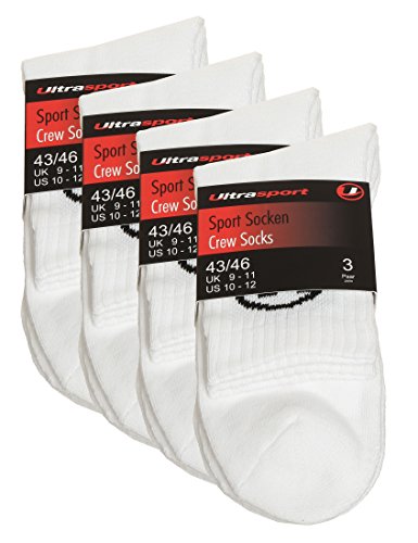 Ultrasport Tennissocken, Sportsocken, 6-Pack oder 12-Pack, schwarz oder weiss, fur Damen und Herren, bequem aus Baumwolle, fur Training, Workout und viele weitere Sportarten, 4 Gross