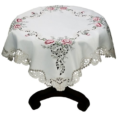Xia Home Fashions Splendid Meadow Embroidered Cutwork Floral Table Topper, 34-Inch by 34-Inch