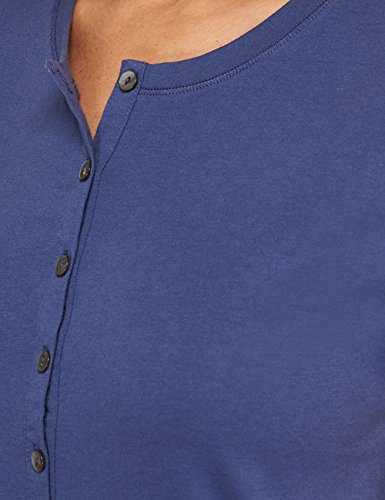 dunkelblaues T-Shirt fur Damen aus der beliebten SCHIESSER-Serie Mix & Relax mit langer, silber-matter Metallknopfleiste vorgelegte Schulternahte Pflegekennzeichnung durch Pad-Print im Nackenbereich - ohne storendes Innenetikett in softer Single-Jersey-Qualitat