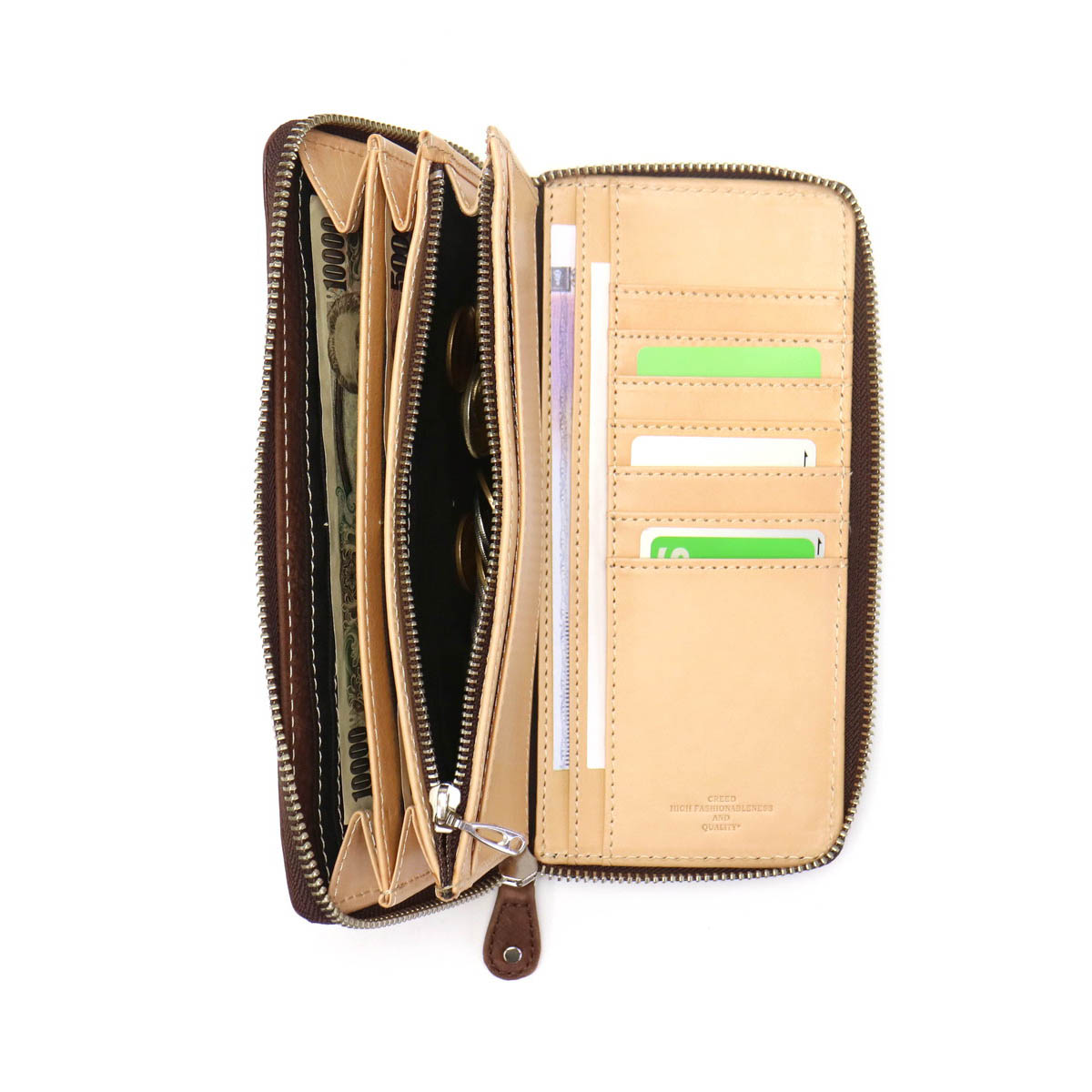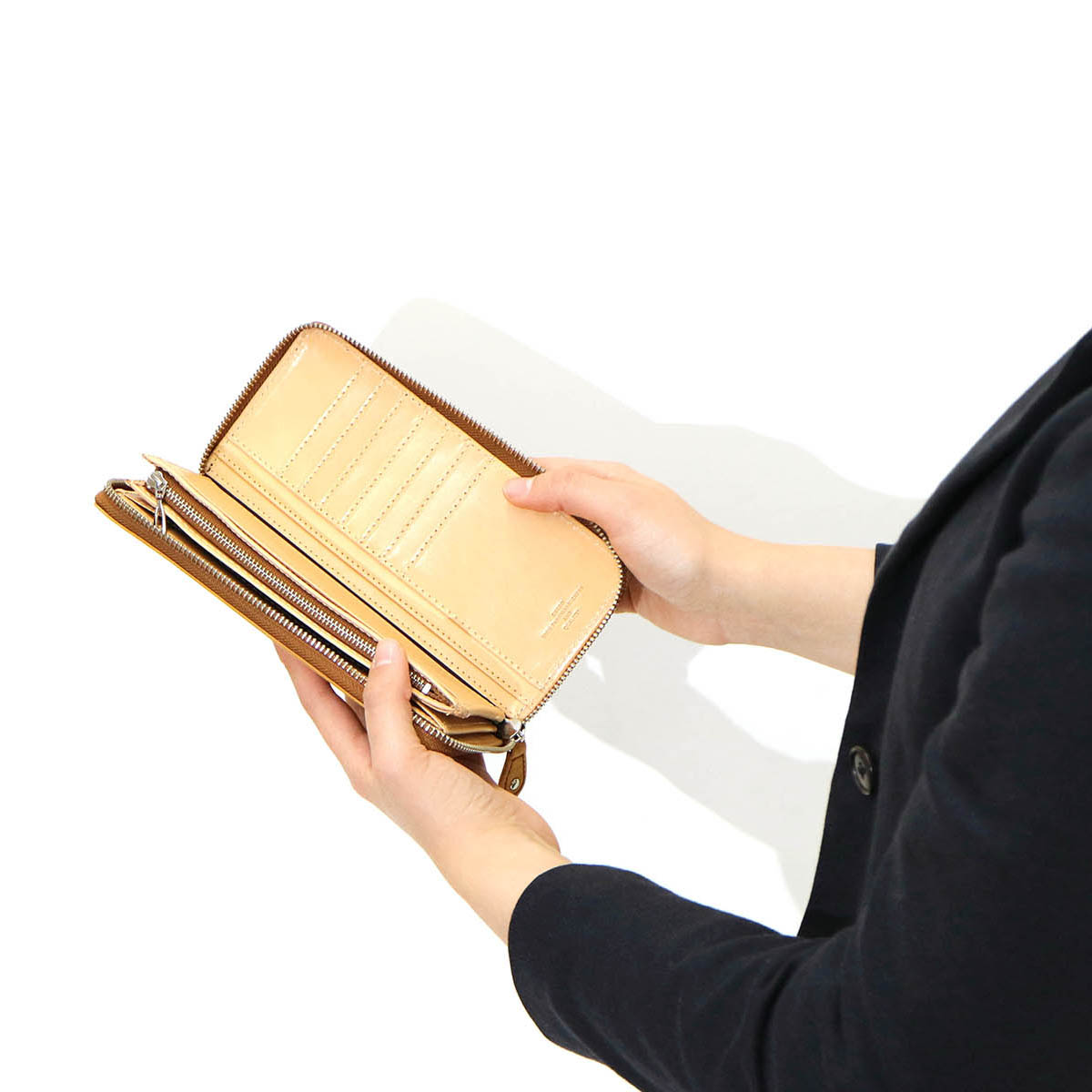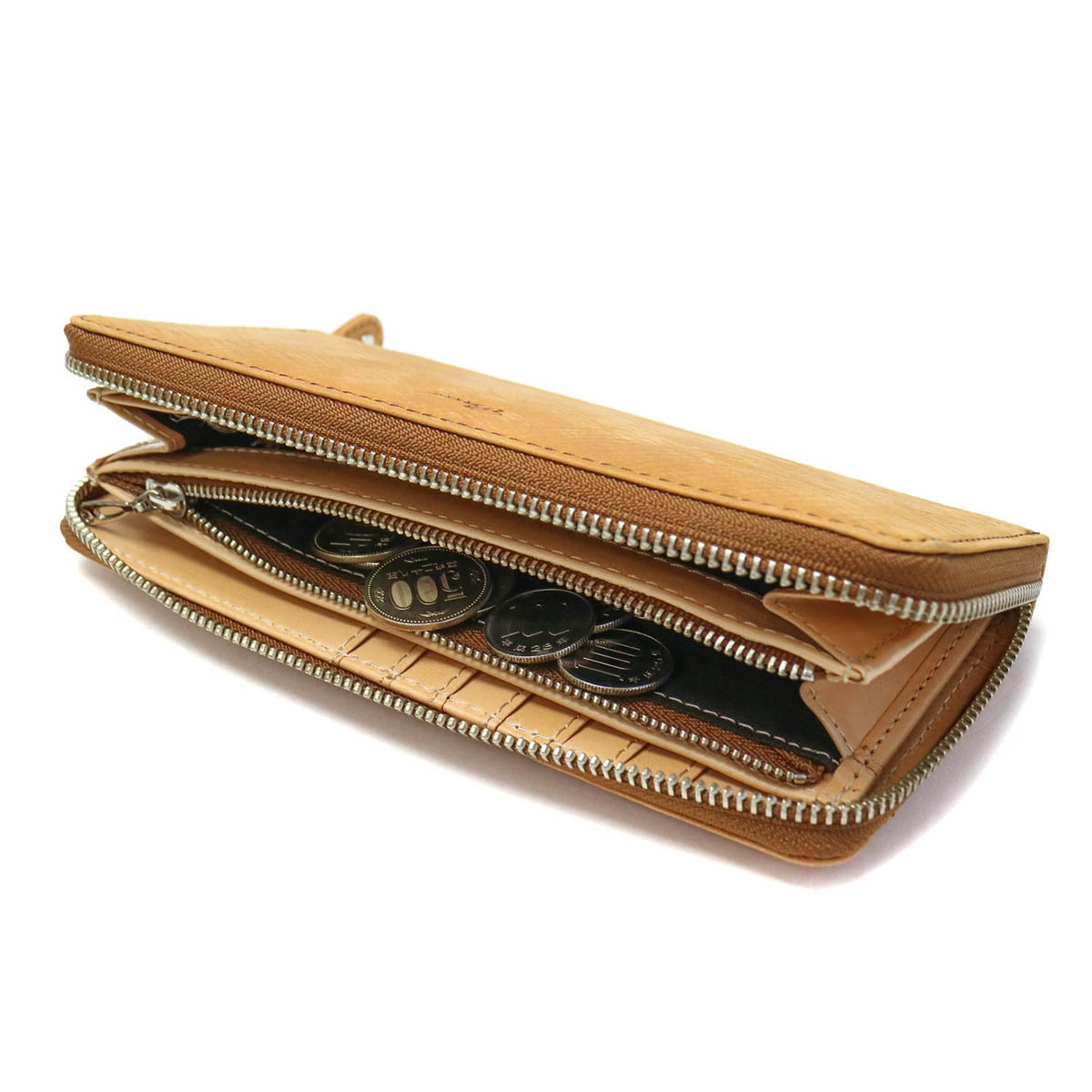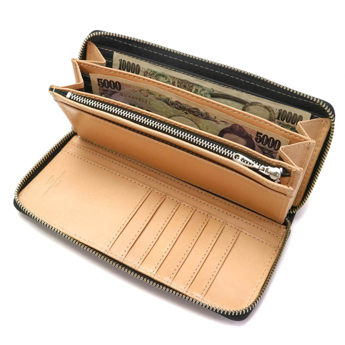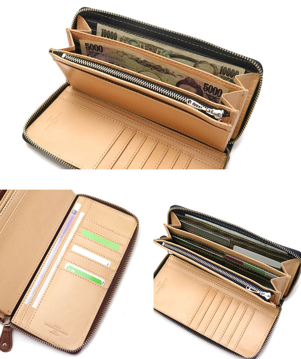 The main storage is equipped with 19 card pockets and 4 free pockets that can be used, and even if cards and receipts increase, it will show storage capacity with a sense of security. Wallet is also divided into 2 rooms, you can manage the type of bills. It opens wide with round fastener, and it is also excellent in visibility.