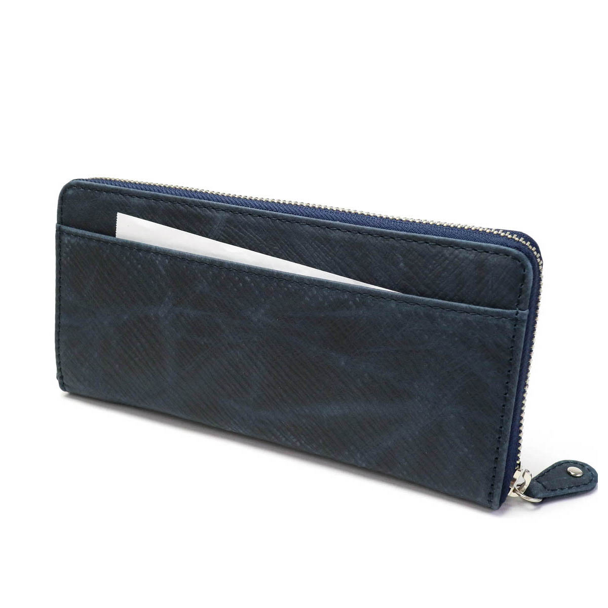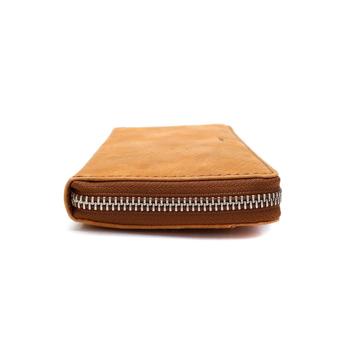 It is a round zipper long wallet of series "Energy" featuring domestic raw rind dyed with dye and wax, featuring a soft texture and a texture that is citrus. It has been finished in a unique atmosphere, such as embossing and smearing and rubbing like atari. It is a functional made with many pockets.