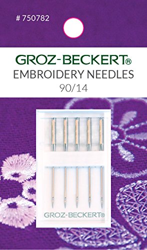 -. Feature : Groz-Beckert needles manufactured in Germany since 1852 / For machine embroidery or embellishing with decorative thread / Has light point (neither sharp nor ballpoint) and enlarged eye to keep decorative threads from shredding or breaking, and prevent skipped stitches / Package of 5 needles