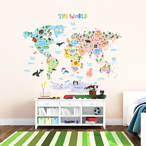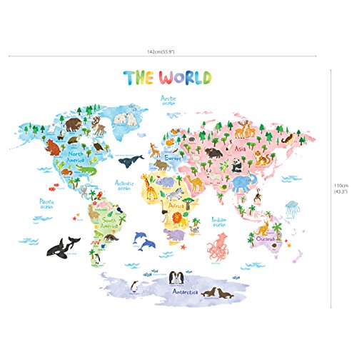 Decowall DLT-1615 Animal World Map Kids Wall Decals Wall Stickers Peel and Stick Removable Wall Stickers for Kids Nursery Bedroom Living Room (Xlarge)