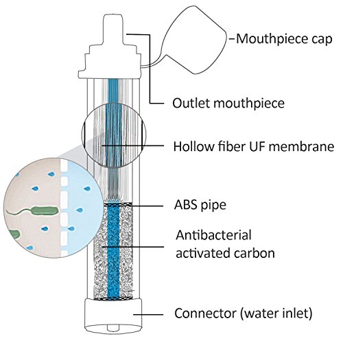 Removel 99.9999% waterborne bacteria and protozoal like escherichia coli , vibrio bacteria , legionella bacteria , Staphylococcus aureus , salmonella etc . most small filtration fineness is 0.01 micron . people can drink water more saft and more clean Perfect for Long Term Storage: The SurviMate Filter's internal filters are sealed inside of the device and designed to last thanks to high grade non-oxidizing materials that make up the internal filters.