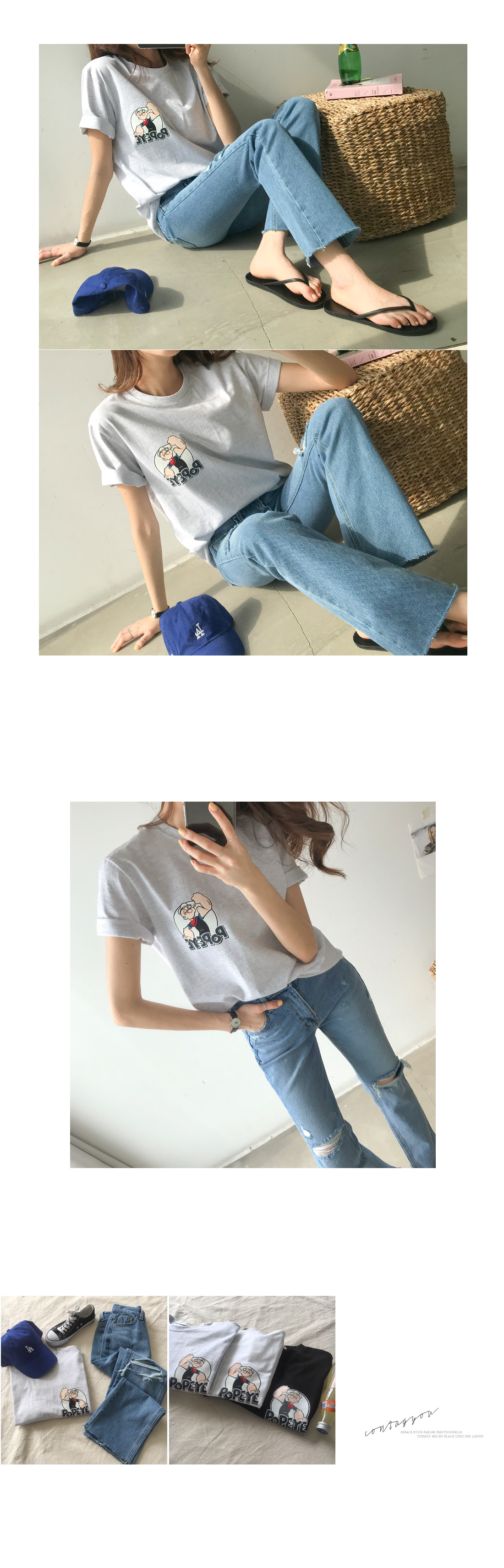 귀여운 뽀빠이 프린팅이 한층 더 사랑스러우면서도 밋밋하지 않게 스타일을 더해드리구요-!