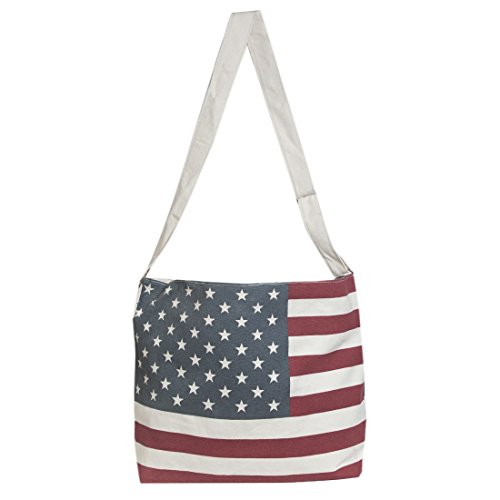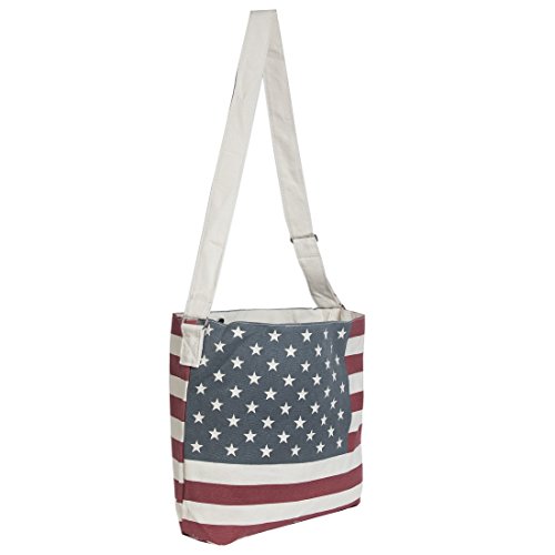 Canvas American Flag Crossbody Tote w/ Long Strap
