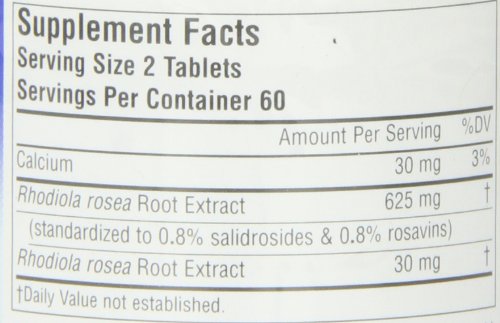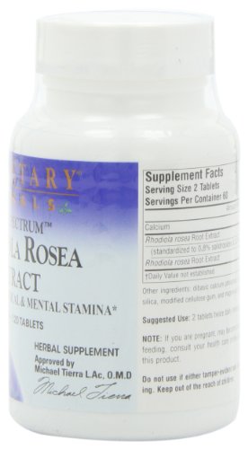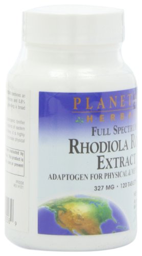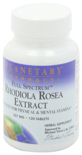 -. Binding : Health and Beauty -. Brand : Planetary Formulas -. Department : Herbs & Teas -. EAN : 0021078105589 -. Feature : Adaptogen for physical and mental stamina / A legendary botanical from the Polar Arctic regions of Eastern Siberia / Traditionally used to increase stamina / Used to enhance health, vitality and mood and support the normal mechanisms our bodies have for maintaining a healthy balance or homeostasis / Combines an extract standardized to 0.8% salidrosides and 0.8% rosavin with a whole root extract, for a complete spectrum of rhodiola constituents -. IsAdultProduct : 0 -. IsAutographed : 0 -. IsMemorabilia : 0 -. Label : Planetary Formulas -. LegalDisclaimer : * These statements have not been evaluated by the Food and Drug Administration. This product is not intended to diagnose, treat, cure or prevent any disease. ** Always refer to the manufacturer's label on the product for description, recommended dose and precautions. -. Manufacturer : Planetary Formulas -. MPN : PF0558 -. NumberOfItems : 1 -. PackageQuantity : 1 -. PartNumber : PF0558 -. ProductGroup : Health and Beauty -. ProductTypeName : HEALTH_PERSONAL_CARE -. Publisher : Planetary Formulas -. ReleaseDate : 2006-06-21 -. Size : 120 -. Studio : Planetary Formulas -. Title : Planetary Formulas Full Spectrum Rhodiola Rosea Extract, 327 mg, Tablets, 120 tablets -. UPC : 021078105589