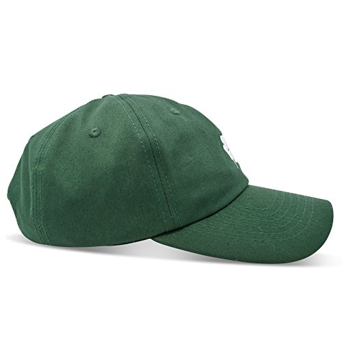 -. Feature : MATERIAL: 100% Cotton / FEATURES: Custom Four Leaf Clover Irish logo embroidered design, Adjustable Size Metal Buckle, Soft inner sweat band lining, Well Ventilated, Light Weight / SIZE: ADULTS 6 3/4 to 7 1/2 / COLORS: Black, White, Dark Green, Kelly Green / INTENDED USES: Saint Patrick's Day, Game Day, Travel, Hiking, Hanging out with friends, personal use, parties, daily outings