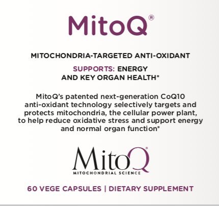 MitoQ is a patented antioxidant that targets the mitochondria, our cellular power plant, to support cell function and heart, liver, kidney and brain health.