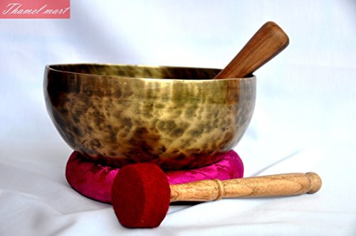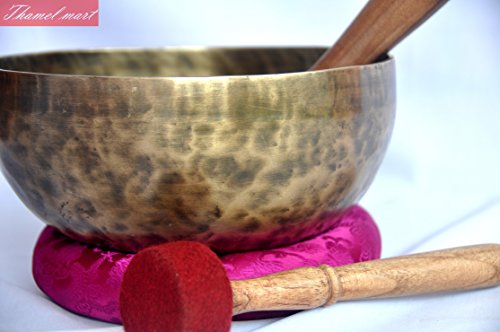 Studio : thamelmart Publisher : thamelmart Product Description The Heart and High Heart F Note Antique Hand Hammered Tibetan Meditation Singing Bowl 8 Inches is a special bowl, which is made of seven metals, i.e. gold, silver, copper, iron, tin, lead, and zinc. All the metal used has a specific purpose and represent the sun and the moon and other planets. This bowl can be used for meditation, music, and chakra cleansing. A leather striker is included with this singing bowl and this bowl was hand-hammered in Nepal. This bowl is truly hand made in a traditional way at singing-bowl house. Due to handmade bowl,the surface have several marked of hammered on it. The bowl have long lasting tune which create totally peaceful environment around you . who are looking for real handmade bowl from Himalaya will not be disappointing by this bowl. The Heart and High Heart chakra is positioned in the center of the chest. Green is the shade of the heart chakra and the musical note is F. In some cases the heart chakra is revealed as pink, specifically for relationships and sending love from ones heart. Specification of Bowl : This is handcrafted bowl therefore please note that each one might have slight variations in measurement. Diameter : 8 inch. Height : 4.2 inch. Thickness : 4mm. Weight : 1150gms only bowl and 1300gms including wooden Mallet striker, Gong Striker and Silk cushion. Metrials : Brass and Seven auspicious metals. 0