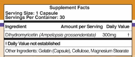 Dihydromyricetin will change your relationship with alcohol forever. No product is more proven to prevent all hangover symptoms. You will wake-up not knowing you drank the night before. Research has shown that it reduces symptoms of intoxication, reduces damage done to the liver, and prevents hangovers. Dihydromyricetin achieves these effects by both improving the livers ability to metabolize alcohol and by blocking alcohol from affecting the brain's GABA receptors.This product contains 30 Capsules of Pure Dihydromyricetin in a white, sealed pill bottle. (The best value on Amazon)Feature