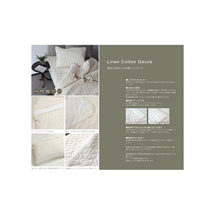 코튼의 부드럽게감과 린넨의 상쾌감이 상질의 잠을 전달합니다.피부에 친절하다「무염색」「무착색」를 고집했습니다.소재 그 자체를 돋보이게 했 부드러운 촉감은,천연 코튼의 매력입니다.또한 천연 소재중에서도 흡습속건성으로 뛰어난 린넨.땀이 나도 피부에 밀착 하지 않고,그 산뜻한 상쾌함은 다른 섬유에서는 맛볼 수 없습니다.