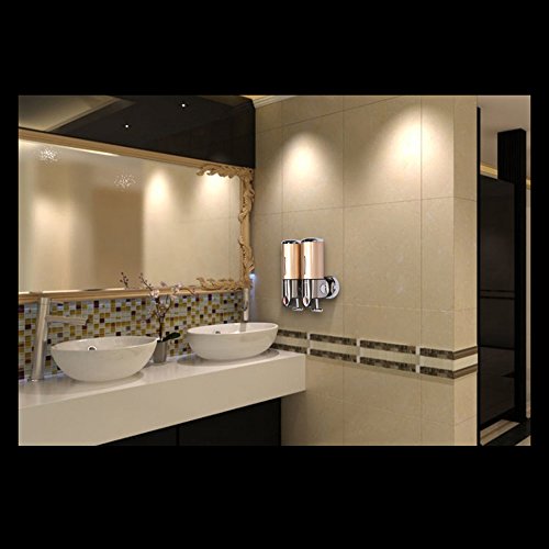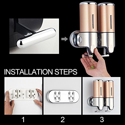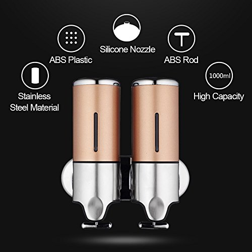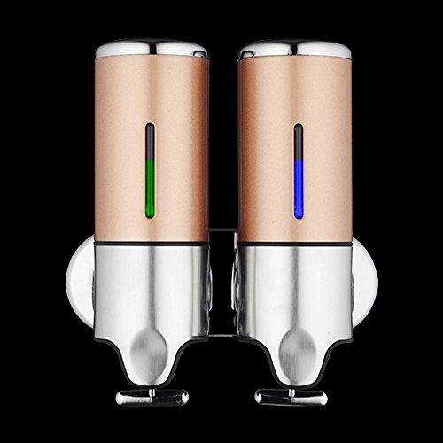 LUCKSTAR Wall Mount Double Bottles Shower Dispenser - 1000ML Double Liquid & Soap Hand Dispenser for Hotel / Household / Bathroom / Kitchen (Gold)