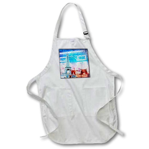 3dRose apr_31519_1 Paris Illustration-Full Length Apron with Pockets, 22 by 30-Inch, White