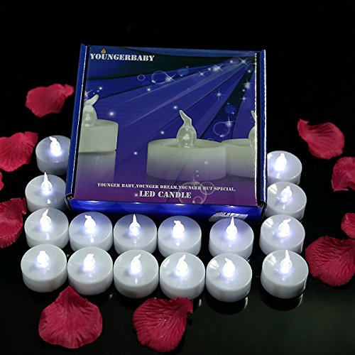 Youngerbaby 24pcs Cool White Flickering Timing Function Battery Operated LED Tea Lights Candles,Unscent Small Flameless Tealight Candles (6 Hrs on 18 Hrs Off) For Wedding, Party, Festival Decoration