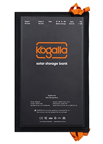 Kogalla 22watt - 10,000 MAH - 2-port USB Solar Storage Bank with Low Light Optimization