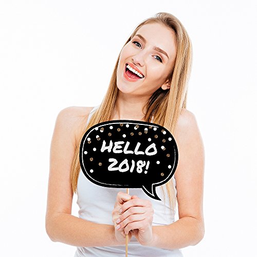 - HIGH-QUALITY PARTY SUPPLIES: Pop, Fizz, Clink! New Year’s Eve photo booth props are professionally printed on thick cardstock paper. They will arrive cut out and ready to assemble with the included wooden dowel sticks and adhesives. New Year’s Eve Party photo booth props use a No-Mess Glitter Print: Our photo booth props are designed with a printed image of glitter, eliminating glitter flake while maximizing bling effect!