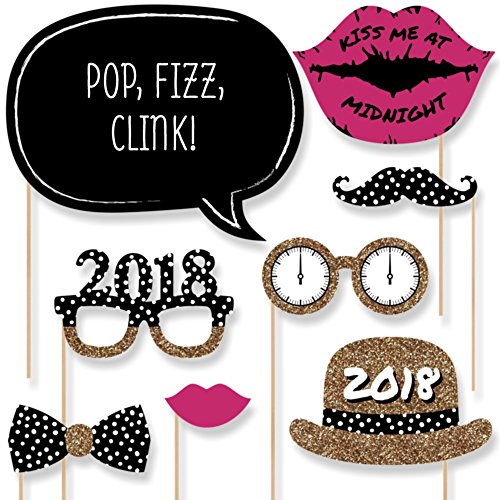 - PERFECT FOR ANY CROWD! Photo booth props are fun Pop, Fizz, Clink! 2018 New Year’s Eve party supplies for adults and kids - everyone will love the funny faces on these New Year’s photo booth props. Take entertaining and shareable party photos of your friends and family while making memories with this funny photo booth props!