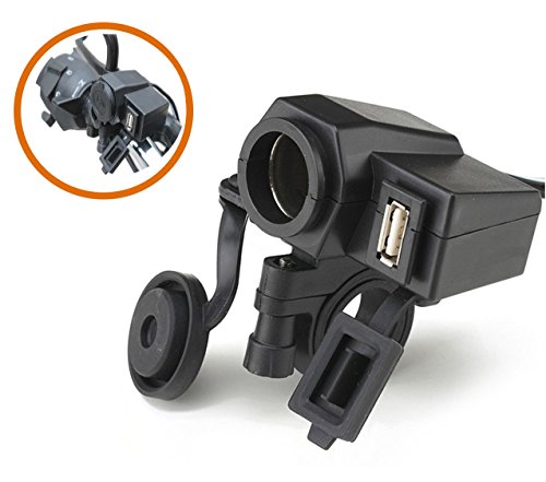 -. Title : Waterproof USB Power Port DC Station,SinLoon Waterproof Motorcycle handlebar 12V Cigarette Lighter Power Adapter Charger,Smartphone GPS Mount,with 5V/2.1A USB Port Integration Outlet Socket - Black