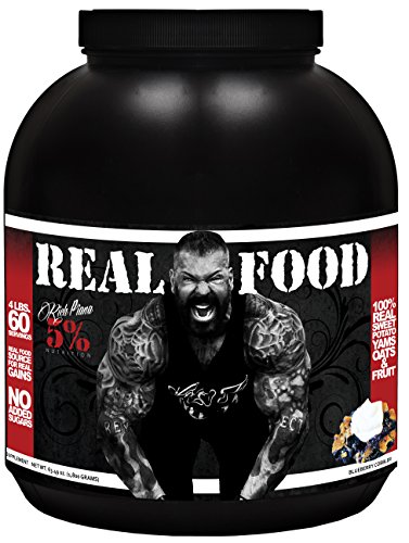 Studio : 5% Nutrition Publisher : 5% Nutrition Binding : Health and Beauty Product Description Real Food is a complex carbohydrate source made from real sweet potatoes, yams, oatmeal and dried fruit to provide 20 grams of low glycemic index carbs per scoop. We saw in "Bigger By the Day" that Rich believes sweet potatoes and yams are among the best complex carbs you can put in your body to grow. Low Glycemic Index The carbohydrates in REAL FOOD are complex carbs that won't cause a rapid change in blood sugar, meaning that they are absorbed at rate slow enough to prevent them from being stored as fat. Carb QUALITY is just as important as carb QUANTITY. Why Complex Carbs? The fiber in fruits and vegetables, like those found in Real Food, changes the way that the body processes sugars and slows down their digestion. This means that your body will process the carbs for what they're meant for - energy- rather than storing it as body fat. Convenience To Reach Your Goals Everyone's nutritional goals are different. We know the challenges of eating the amount of quality food needed to make gains - day in and day out. That's why REAL FOOD offers a versatile option to supplement your diet with quality carbs that fit your individual calorie needs. Tastes Great and Mixes Easy Real Food can be taken in addition to meals to provide adequate carb content for your macros, or combined with protein like our Egg White Crystals throughout the day. Both Real Food and Egg White Crystals are easy to mix with water or in a blender as part of a recovery shake. 0