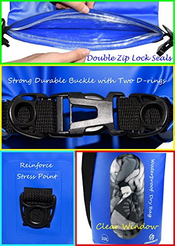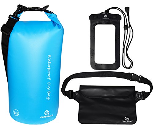 Waterproof Dry Bags Set Of 3 By Freegrace - Dry Bag With 2 Zip Lock Seals & Detachable Shoulder Strap, Waist Pouch & Phone Case - Can Be Submerged Into Water - For Swimming (Sky Blue, 10L)