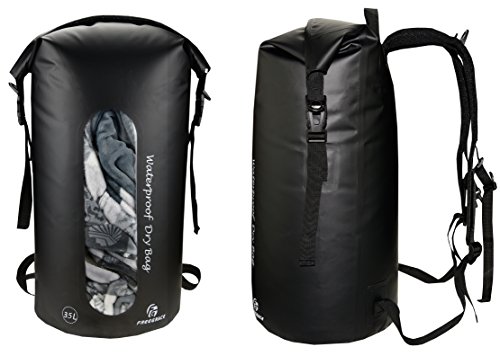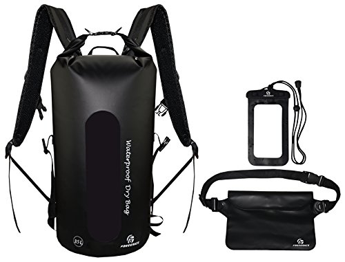 Waterproof Dry Bags Set Of 3 By Freegrace - Dry Bag With 2 Zip Lock Seals & Detachable Shoulder Strap, Waist Pouch & Phone Case - Can Be Submerged Into Water For Swimming, Kayak, Rafting (Black 35L)