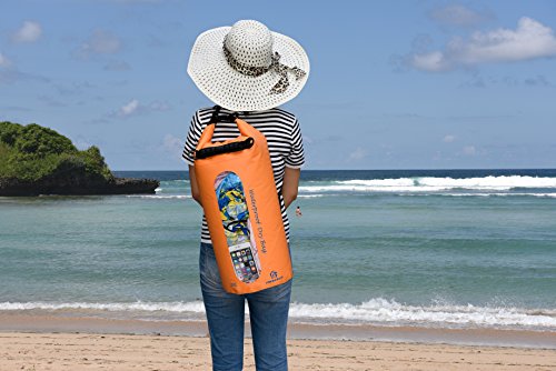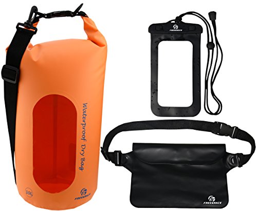 Waterproof Dry Bags Set Of 3 By Freegrace - Dry Bag With 2 Zip Lock Seals & Detachable Shoulder Strap, Waist Pouch & Phone Case - Can Be Submerged Into Water - For Swimming (Orange(Window), 10L)