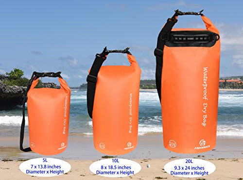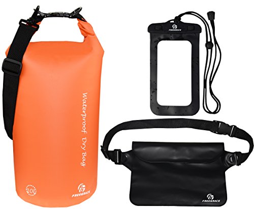 Waterproof Dry Bags Set Of 3 By Freegrace - Dry Bag With 2 Zip Lock Seals & Detachable Shoulder Strap, Waist Pouch & Phone Case - Can Be Submerged Into Water - For Swimming (Orange, 10L)