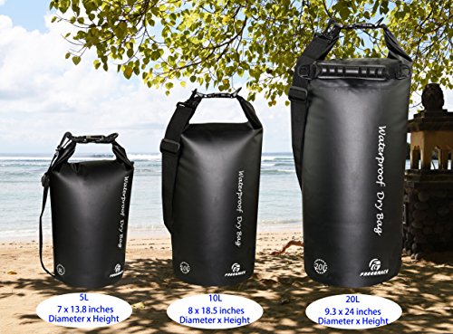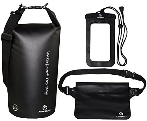 Waterproof Dry Bags Set Of 3 By Freegrace - Dry Bag With 2 Zip Lock Seals & Detachable Shoulder Strap, Waist Pouch & Phone Case - Can Be Submerged Into Water (Black, 20L)