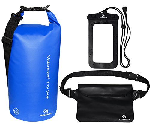 Waterproof Dry Bags Set Of 3 By Freegrace - Dry Bag With 2 Zip Lock Seals & Detachable Shoulder Strap, Waist Pouch & Phone Case - Can Be Submerged Into Water For Swimming, Kayak, Rafting & Boating