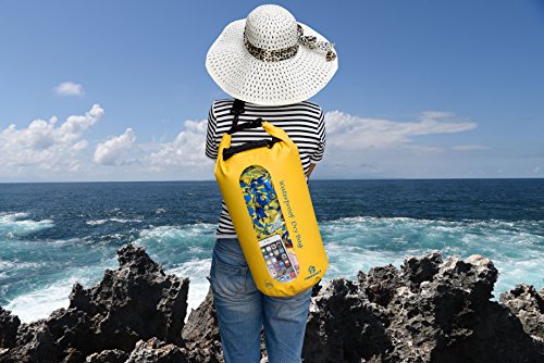 Waterproof Dry Bags Set Of 3 By Freegrace - Dry Bag With 2 Zip Lock Seals & Detachable Shoulder Strap, Waist Pouch & Phone Case - Can Be Submerged Into Water - For Swimming (Yellow(Window), 20L)