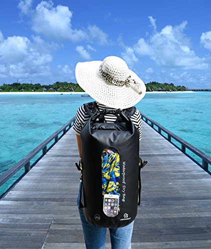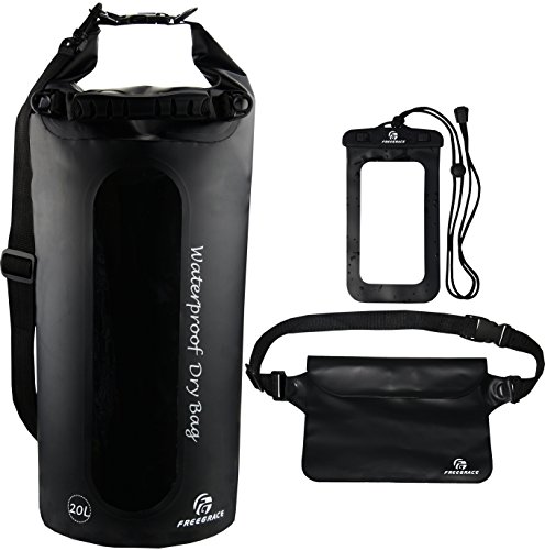 Waterproof Dry Bags Set Of 3 By Freegrace - Dry Bag With 2 Zip Lock Seals & Detachable Shoulder Strap, Waist Pouch & Phone Case - Can Be Submerged Into Water - For Swimming (Black(Window), 20L)