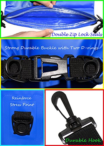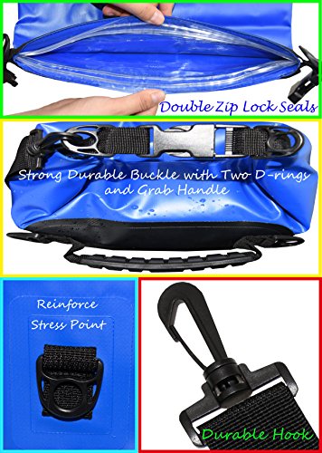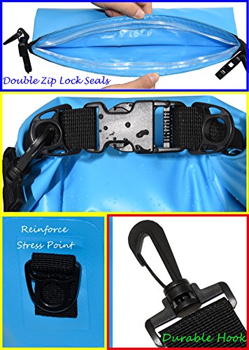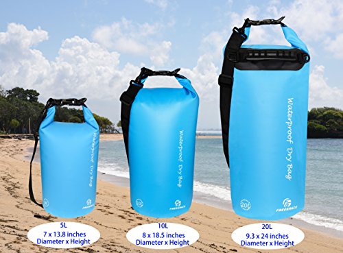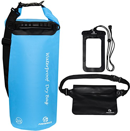 Waterproof Dry Bags Set Of 3 By Freegrace - Dry Bag With 2 Zip Lock Seals & Detachable Shoulder Strap, Waist Pouch & Phone Case - Can Be Submerged Into Water (Sky Blue, 20L)