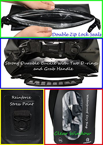 Waterproof Dry Bags Set Of 3 By Freegrace - Dry Bag With 2 Zip Lock Seals & Detachable Shoulder Strap, Waist Pouch & Phone Case - Can Be Submerged Into Water - For Swimming (Black(Window), 10L)