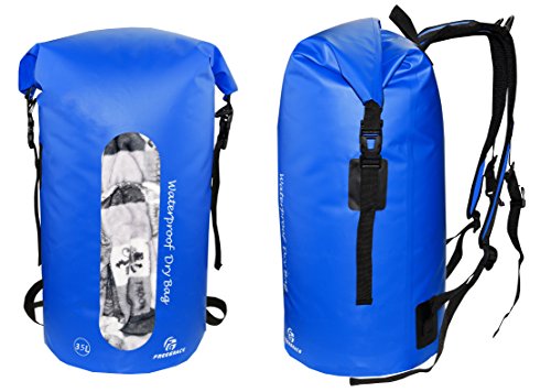 Waterproof Dry Bags Set Of 3 By Freegrace - Dry Bag With 2 Zip Lock Seals & Detachable Shoulder Strap, Waist Pouch & Phone Case - Can Be Submerged Into Water For Swimming, Kayak, Rafting Navy Blue 35L