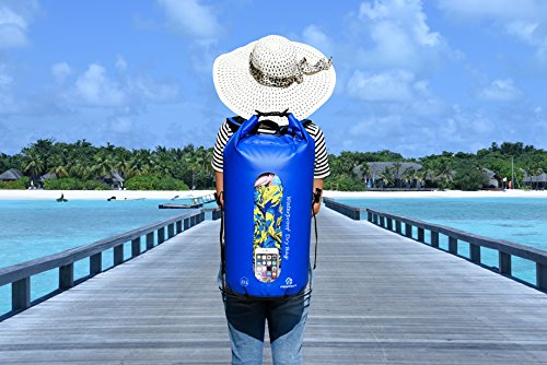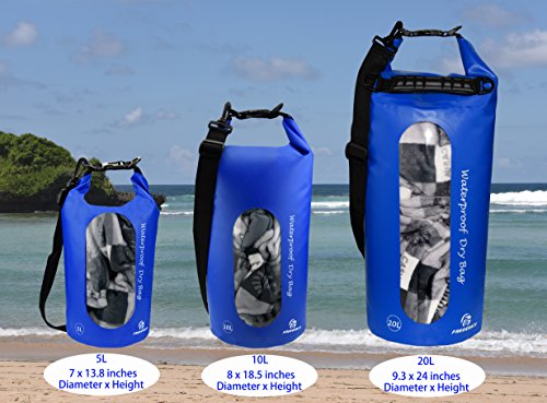 Waterproof Dry Bags Set Of 3 By Freegrace - Dry Bag With 2 Zip Lock Seals & Detachable Shoulder Strap, Waist Pouch & Phone Case - Can Be Submerged Into Water - For Swimming (Navy Blue(Window), 20L)