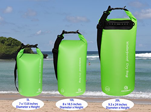 Waterproof Dry Bags Set Of 3 By Freegrace - Dry Bag With 2 Zip Lock Seals & Detachable Shoulder Strap, Waist Pouch & Phone Case - Can Be Submerged Into Water (Green, 20L)