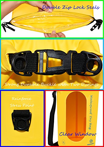 Waterproof Dry Bags Set Of 3 By Freegrace - Dry Bag With 2 Zip Lock Seals & Detachable Shoulder Strap, Waist Pouch & Phone Case - Can Be Submerged Into Water - For Swimming (Yellow(Window), 5L)