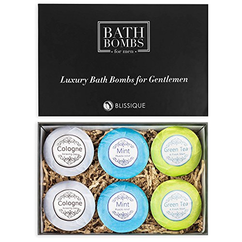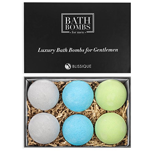 - ✔️ LUXURY BATH BOMBS FOR MEN: 6 Premium BIG Lush Style (5 Ounce) Bath Bombs for Men in a Premium Gentleman's Gift Box. Ready to Gift the Man in Your Life. Bath Gift Set for Aromatherapy, Stress Relief and Relaxation. Men love Blissique Bath Bombs! Perfect for Valentines Day