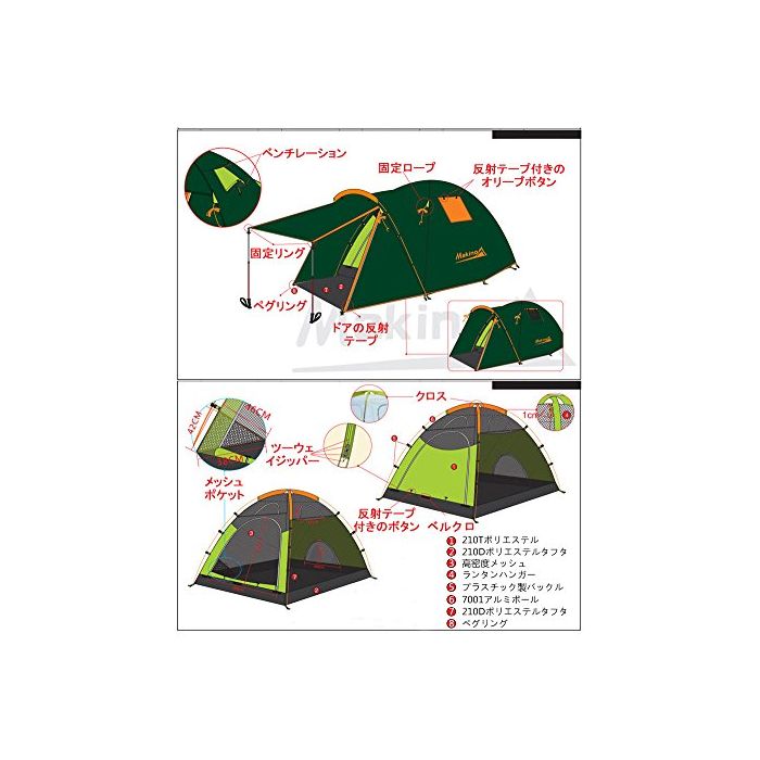 원본상품명:(マキノ)Makino 2-3人用 アウトドア キャンプ ツ?リング 防災 テント 二重層 0051