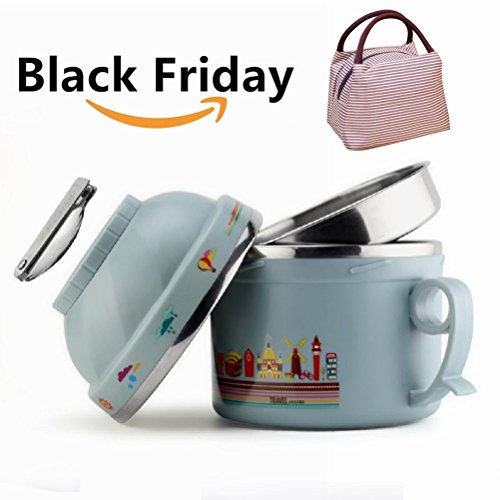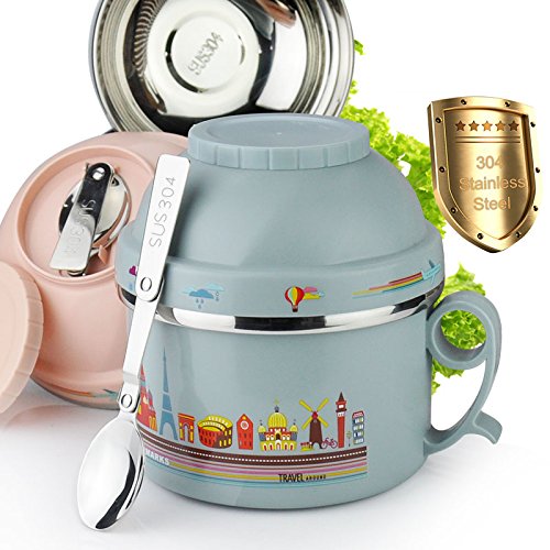 Lunch Box for Kids with Lunch Bag Stainless Steel Vacuum Bentos / Food Carrier /Food Container / Taffin Lunch Box Containers Portion Control Containers - Hold Warm for 3 HOURS,1.2L,Grey Blue