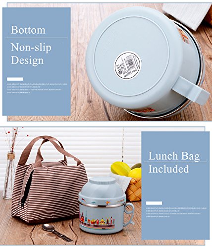 - CONVENIENT: 41 oz containers allow you carry lots of,fit for 1 to 2 person. Great size for a hearty meal while leaving room for snacks or a dessert.It features a comfortable handle to better carrying.A insulated lunch bag is included.