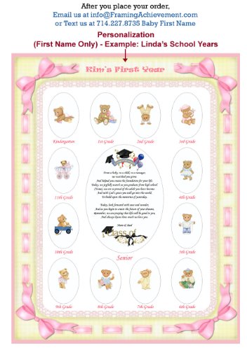 -. Binding : Baby Product -. Brand : FA Personalized Photo Picture Mats Co. -. Color : Pink -. EAN : 0092145684474 -. Feature : PERSONALIZATION INSTRUCTIONS: Email infoFramingAchievement.com or Text us at 714.227.8735 your personalization (First Name Only) - Example: Tommy's School Years / High Quality REAL Photo Baby Picture Mat size 11 x 14 inches - NOT cheap lightweight cardstock paper like our competitors / Unique Vibrant Color Illustration Borders with Cute Teddy Bear Designs and P in photo openings / Small window size 2.25W x 1.5H inches - Large window size 4.5W x 6.5H inches / Ships by Fedex except HI, APO, AK -. Label : FA Personalized Photo Picture Mats Co. -. Manufacturer : FA Personalized Photo Picture Mats Co. -. Model : Mat-SY003-Pink -. MPN : Mat-SY003-Pink -. PartNumber : Mat-SY003-Pink -. ProductGroup : Baby Product -. ProductTypeName : BABY_PRODUCT -. Publisher : FA Personalized Photo Picture Mats Co. -. Studio : FA Personalized Photo Picture Mats Co. -. Title : 11 X 14 Size Personalized Baby Girl Name Pink Ribbon Yellow Border My School Years Picture Photo Mat with Teddy Bear Illustration and P Verse As Birthday Keepsake, Baby Shower or Nursery Newborn Gifts -. UPC : 092145684474