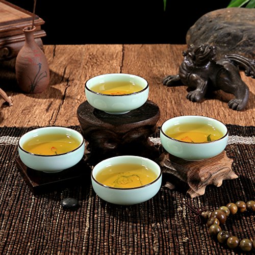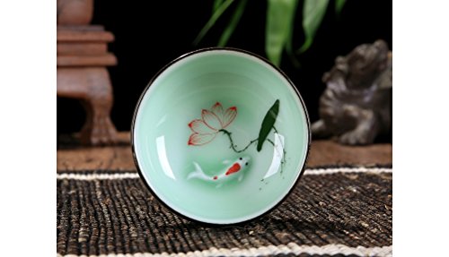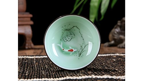 -. Feature : Exquisite handiwork, delicate decoration, Long-quan celadon represents the Ancient Celadon of the highest level / This set of 4 series presentation the lotus growth process and it also meaning spring,summer,autumu,winter the at all seasons. / Vivid hand-paintting fishes are like swimming in the jade when green tea is poured in / Bring you a relaxed moment, best gift for everyone / various in patterns,Capacity:70ml, sizea:2.75X1.38 inches, set of 4
