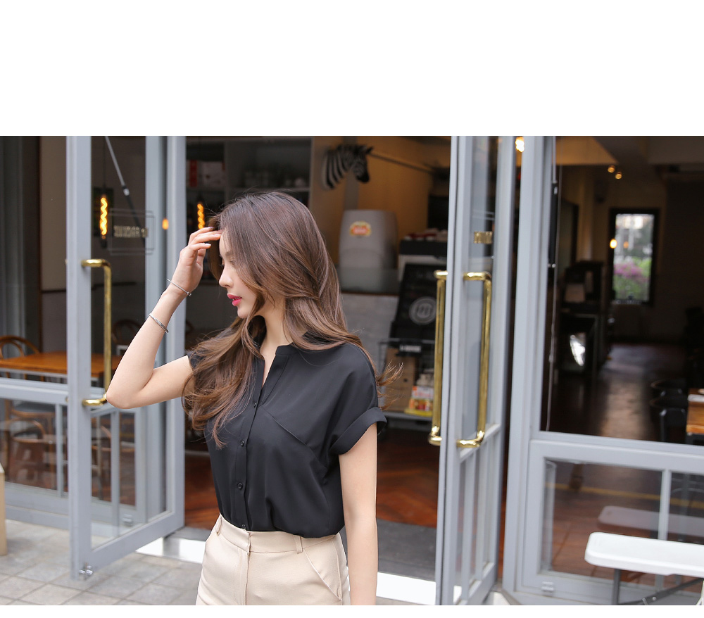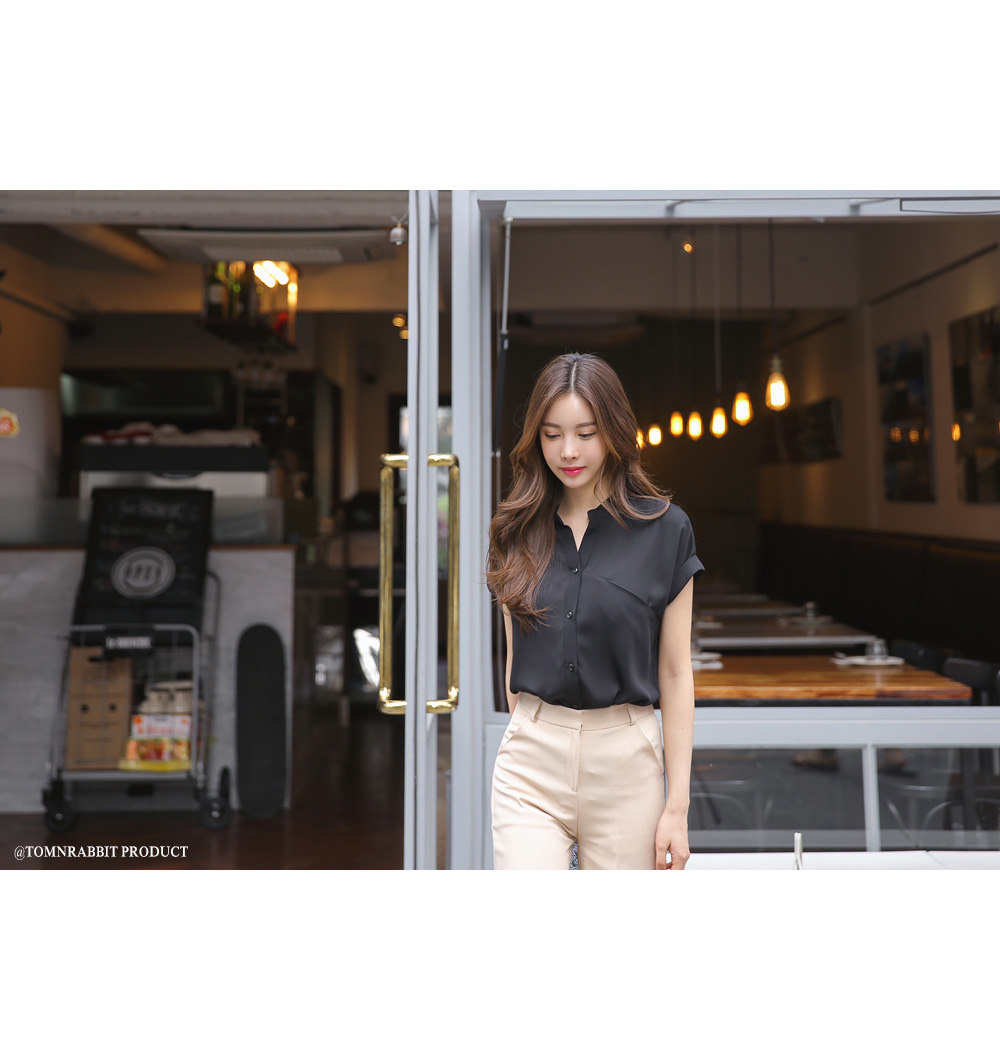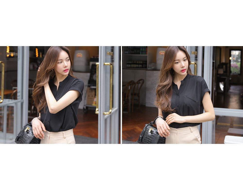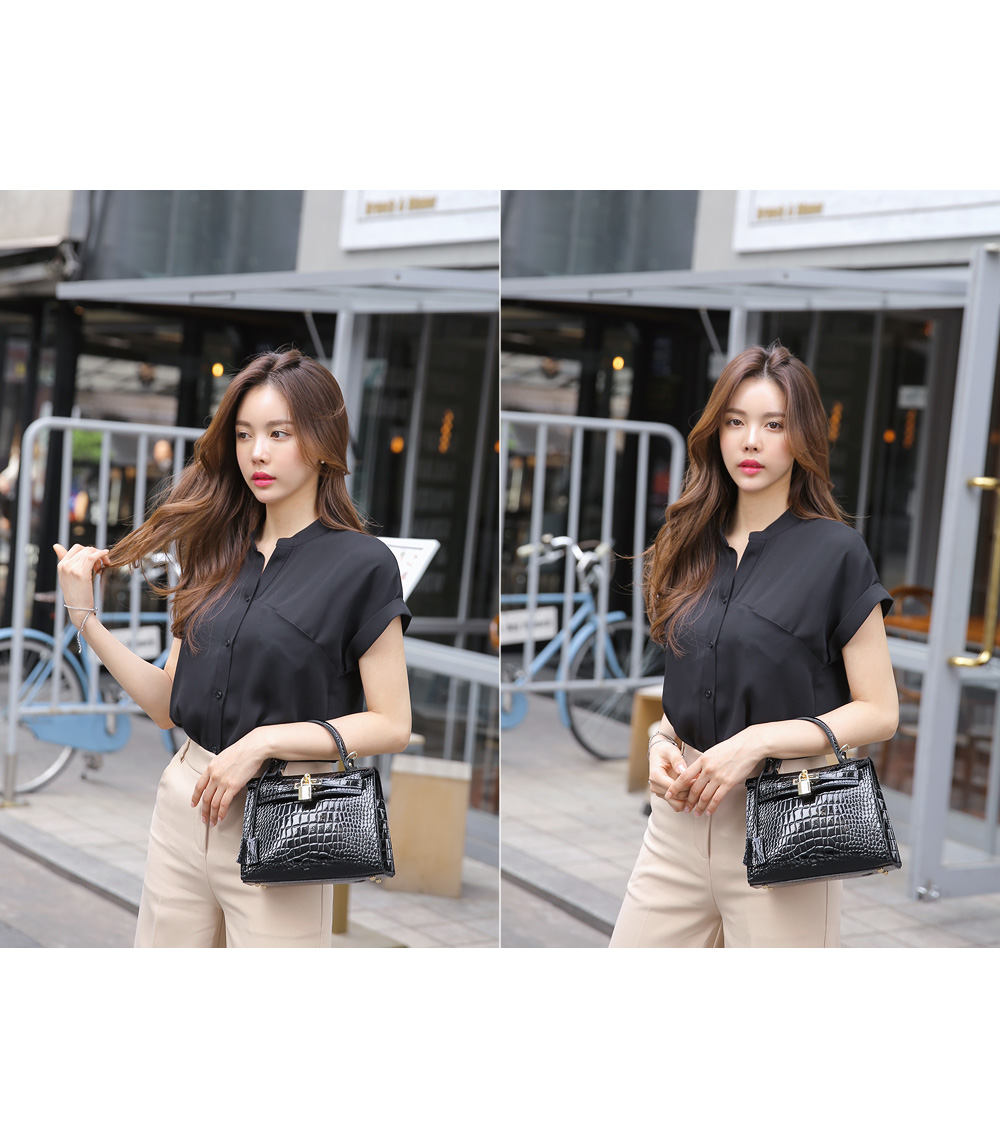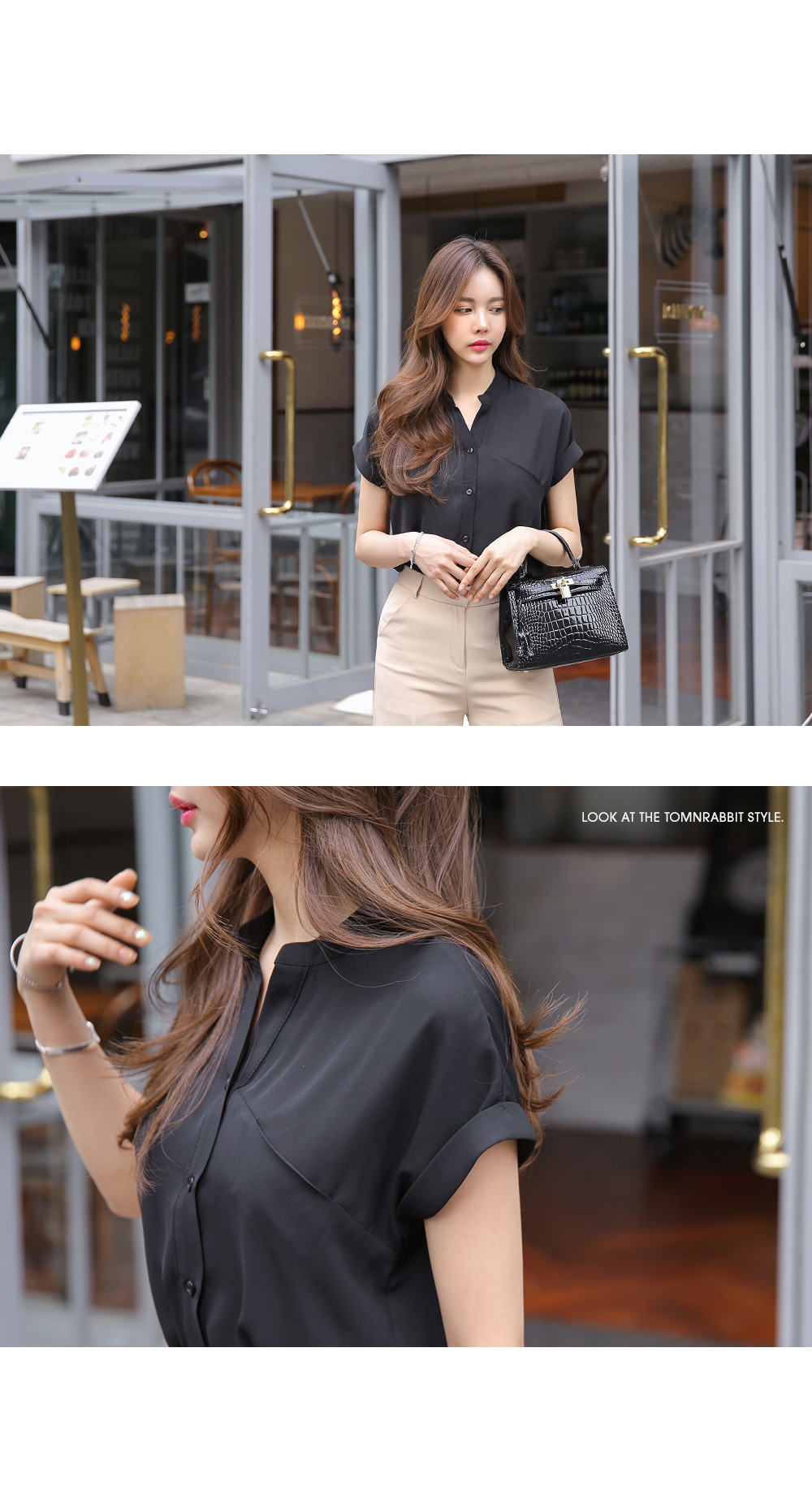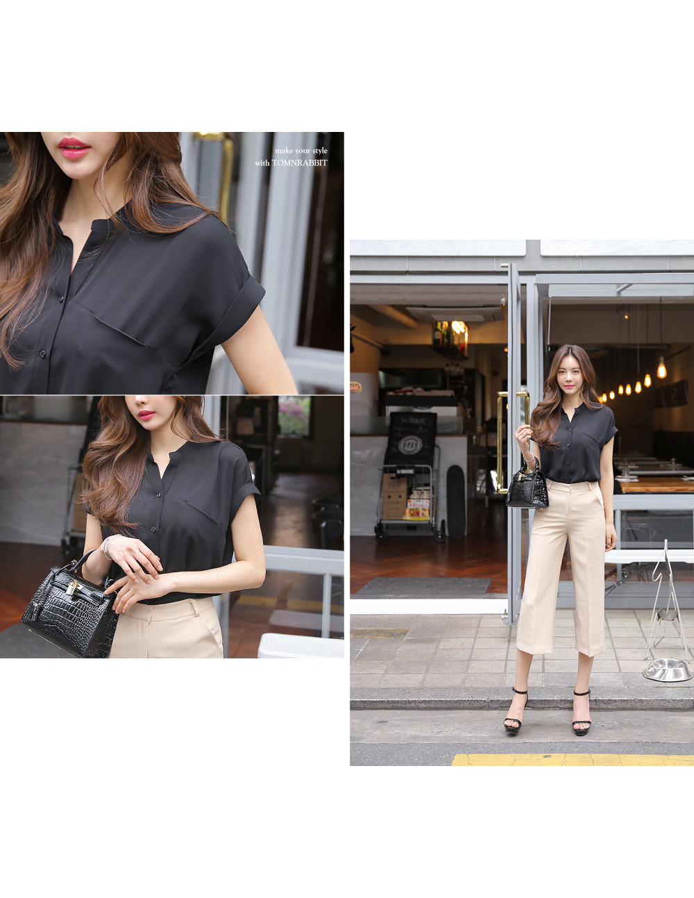 차이나 네크라인으로 단정한 이미지의 블라우스인데요.