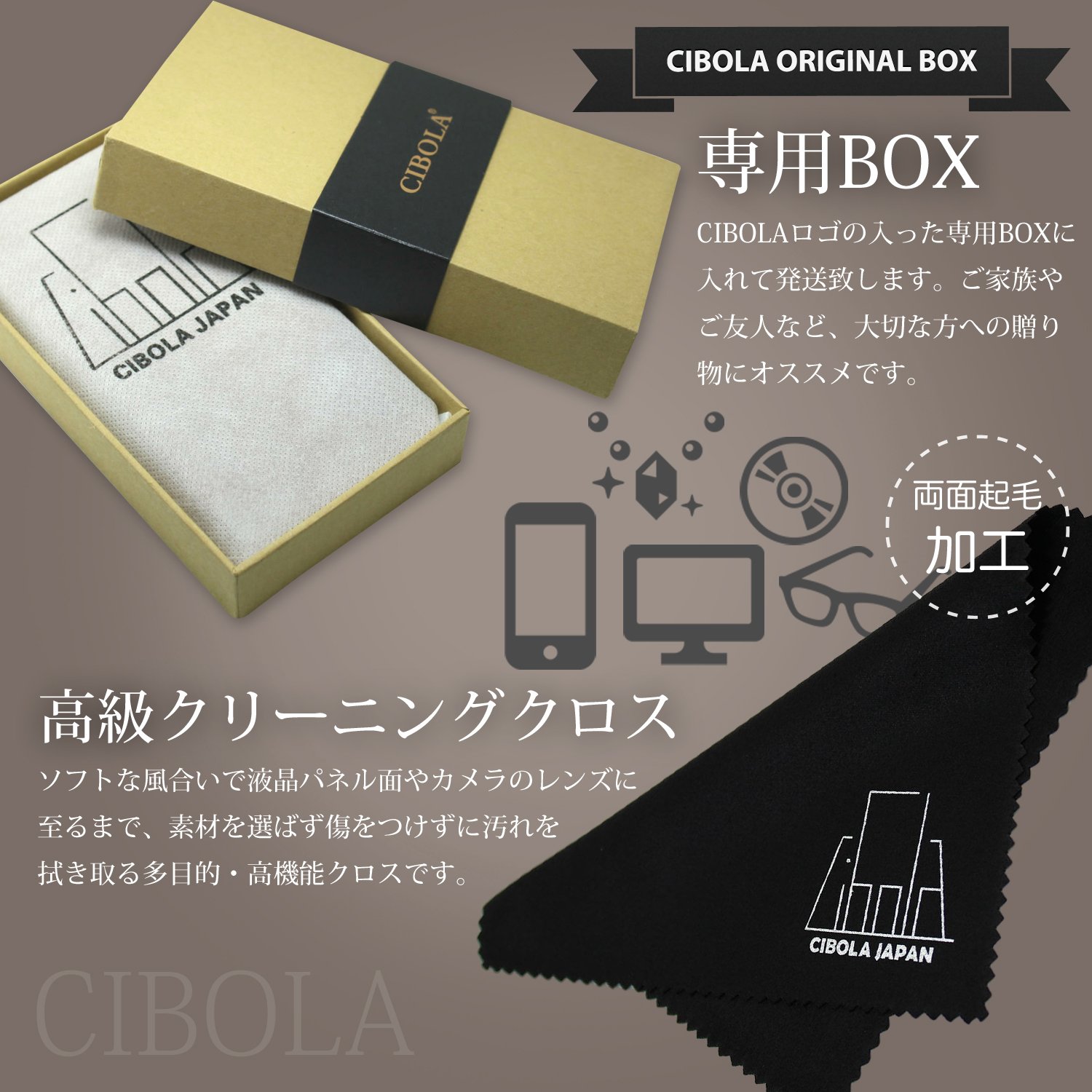 When opening the commodity box full of luxury, the smart case that entered the storage bag and the underlying CIBOLA original high class cloth will appear.