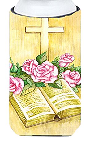 Caroline's Treasures Easter Cross and Bible with Roses Tall Boy Koozie Hugger, Multicolor